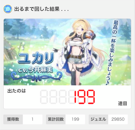 正確には190連ですが、残り10連は毎日有償50ジュエルで引きます。
