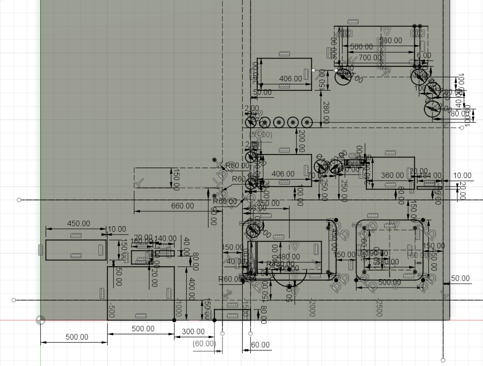 町の入り口から計算を始めて、作った建物から区画を四角で指定して寸法を入れます。
