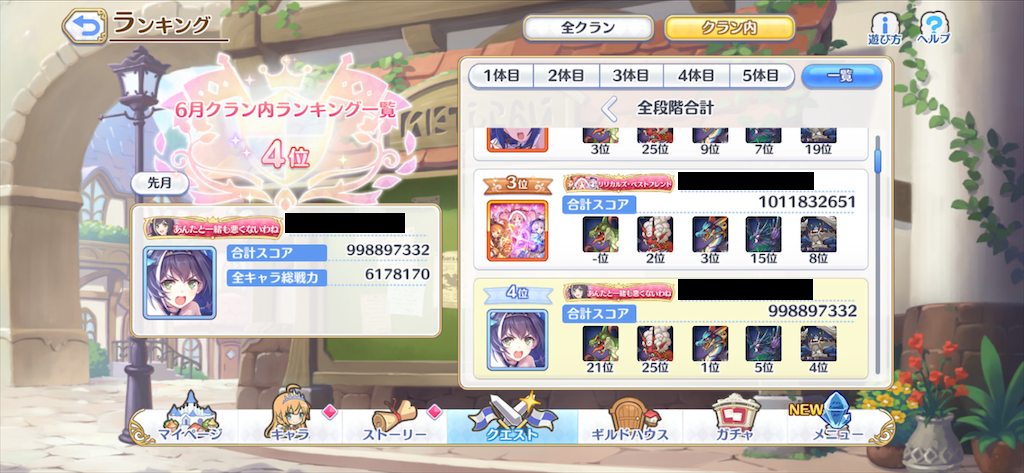 6月クランバトルも3日目と中盤になりました。