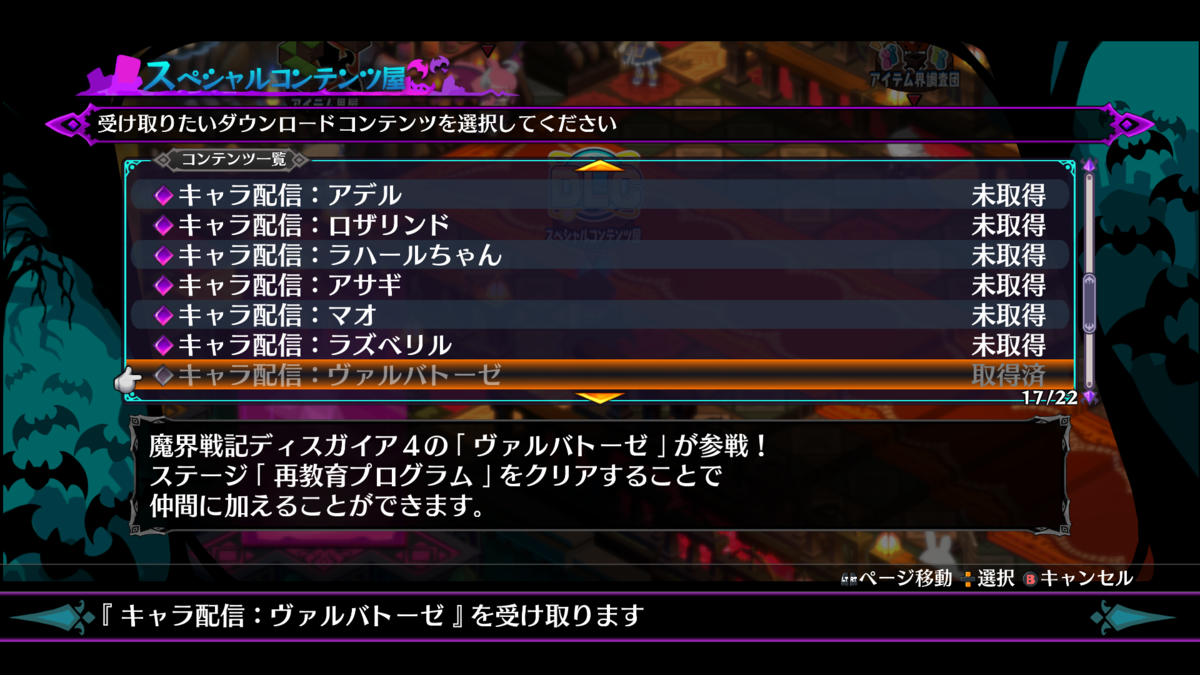 (画像でヴァルバトーゼが灰色になっているのは、本当に無料DLで切るかの確認です)