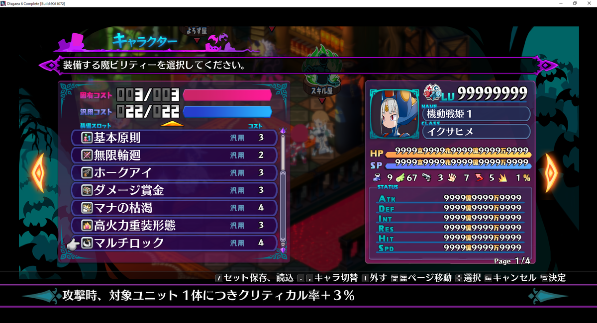 機動戦姫は敵殲滅役、盗賊はアイテム盗み役なのでそれに合った魔ビリティをセットします。