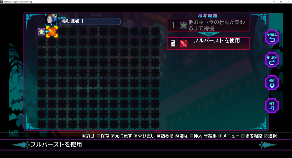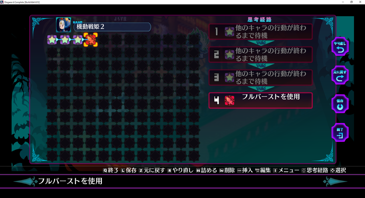 ②盗賊4体行動終了後、機動戦姫1体目が「フルバースト」を使用する