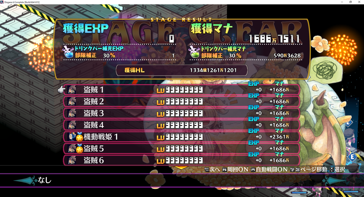 ちなみに、ステージクリアの際はボーナスゲージ最大(フルバでジオ全消滅となります)なのも美味しいです。