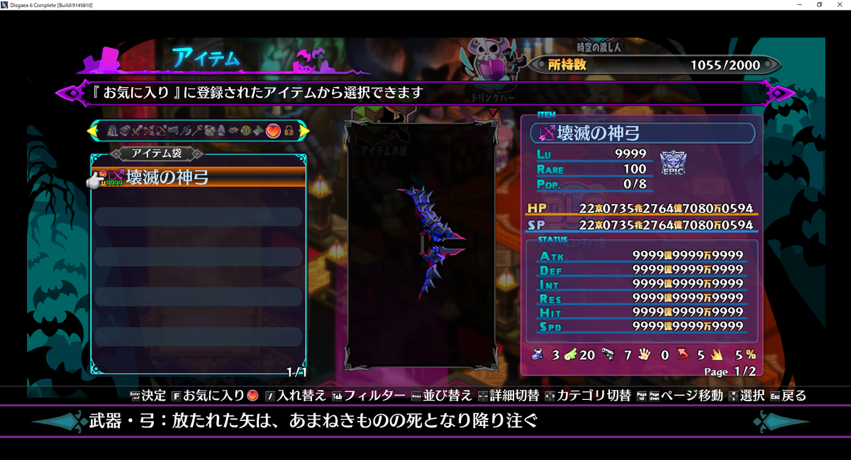 壊滅の神弓よりHP/SPの元のステータス数値が低いので、完全強化まで一体どれだけのアイテムポイントが必要か想像もつきません。