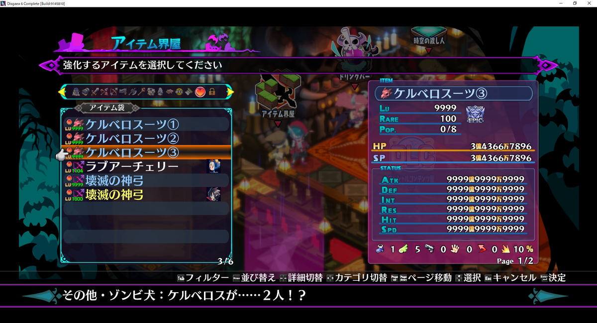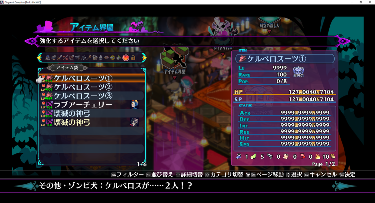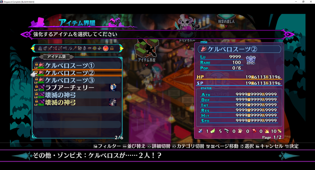 【Steam版ディスガイア6】ケルベロスーツ3つのフル強化が終わり、装備4つ分が完成しました