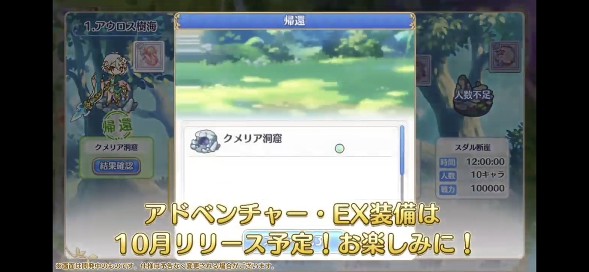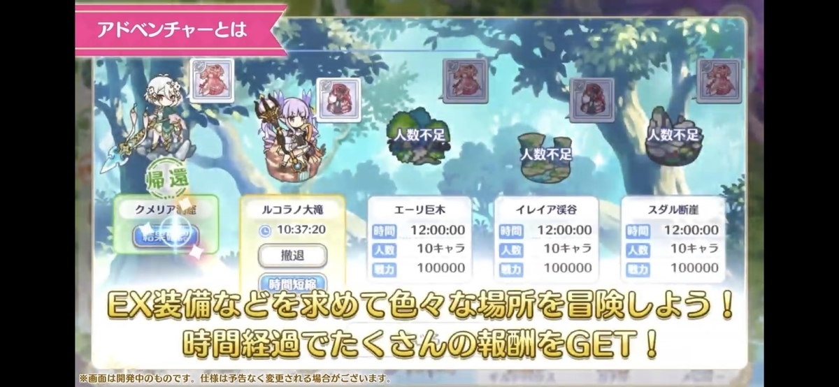キャラのメモリーピースや、EX装備作成に必要なアイテムなどが集められる「放置探索モード」