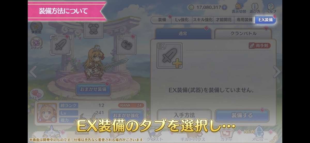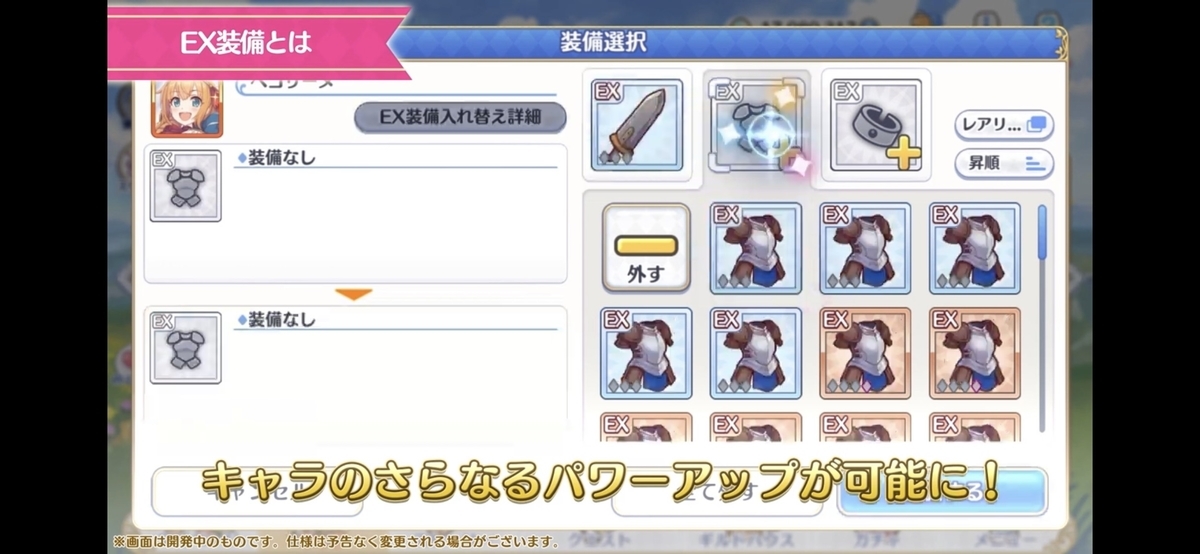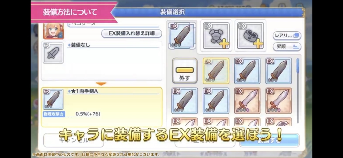 EX装備の画面