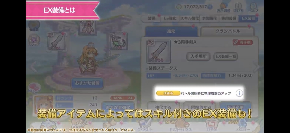 何が問題になるかというと、EX装備の効果が「クランバトル」にも有効の場合、EX装備のスキル次第でTLやダメージ量に大きく影響するからです。