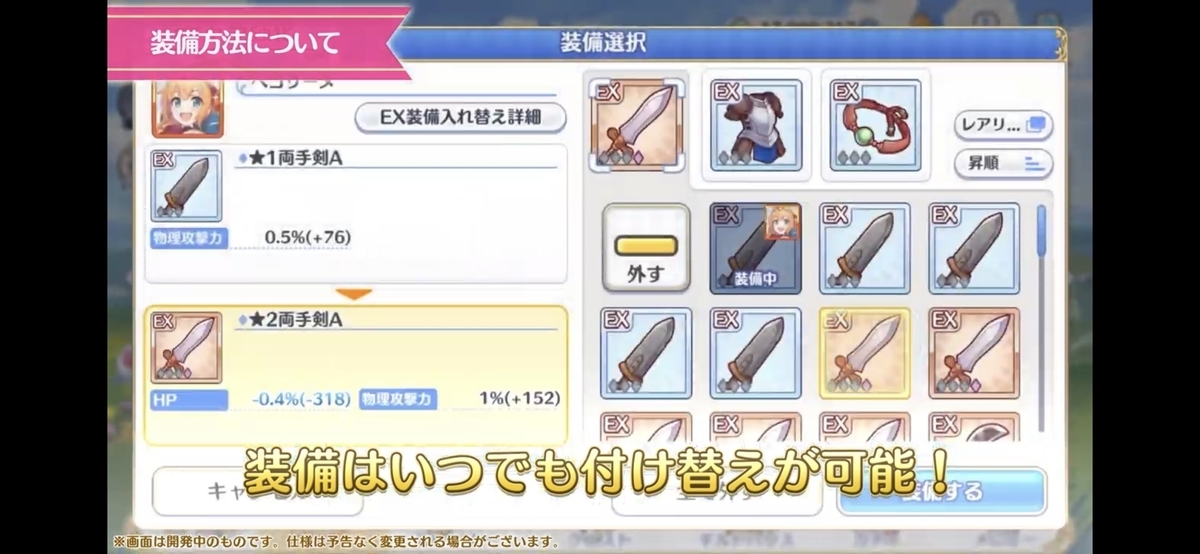 装備は普通のランク上げの時の装備と違って、付け外しは自由にできるそうですね。