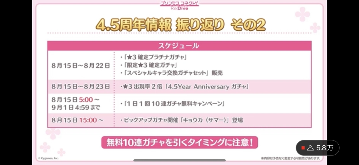 本日8/15はプリコネ4.5周年ですね。