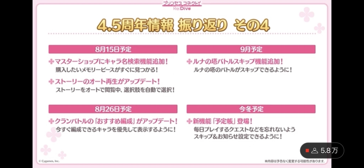 プリコネ4.5周年公式生放送振り返り