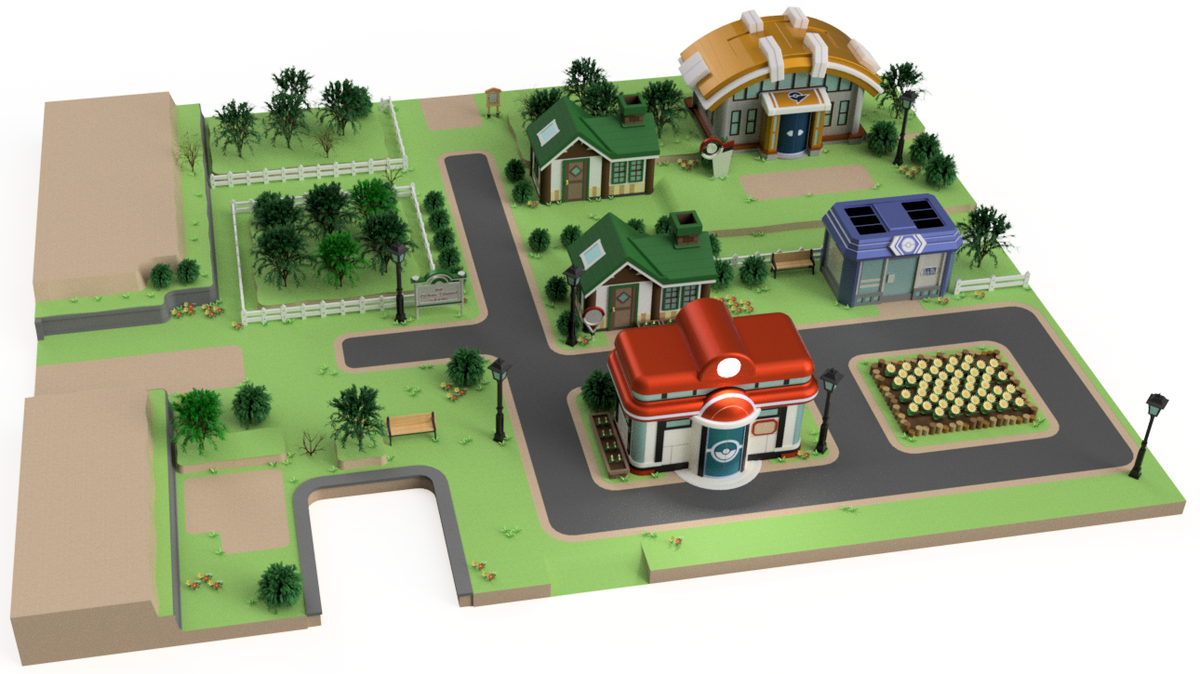 変わらず池周辺の自然物配置と22番道路に接続する高台モデリング作業を続けます。