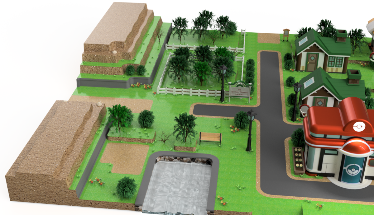 3DCADでポケモンの世界を再現で、第2の町「トキワシティ」が完成しました!