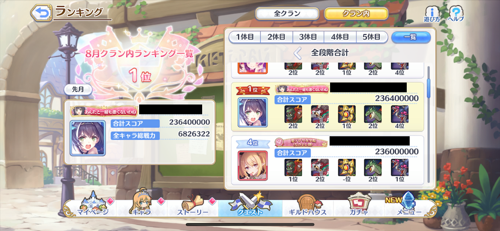 今月も3段階目は1-5貫通編成のように全く同じ編成かつ全員SETフルオート放置で凸できたのでとても助かりました。