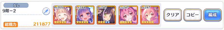 8階では使いましたが、9階では参考編成では使うのですが、参考編成通りでは2凸討伐できず、使わずに攻略しました