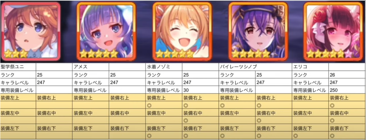 この編成ですが、参考編成ではジータがR26だったりと高ダメージを出すランクや装備になっています。