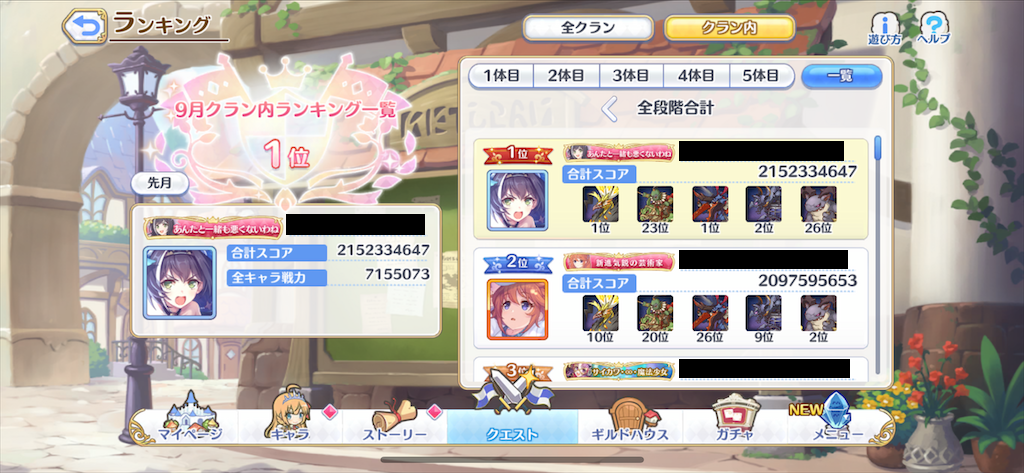 【プリコネ】9月クランバトル 5日目最終日の結果