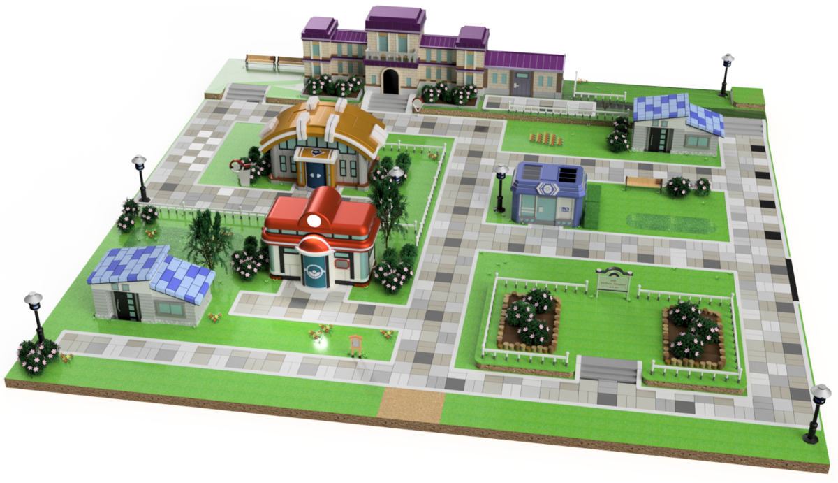 町の左端を拡張し、高台やニビ科学博物館左端奥に街灯や自然物を配置しました。