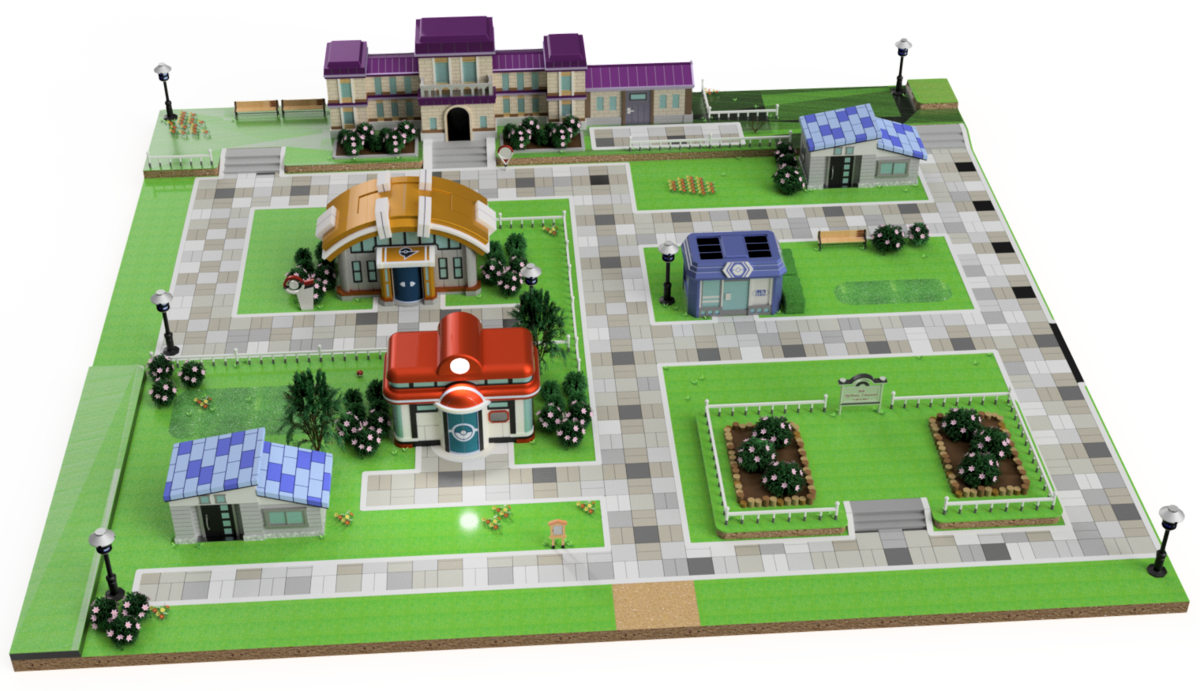 右端は次の3番道路やステージである「おつきみ山」へとつながるので、まずは次の町や道路につながらない左端からモデリングしました。