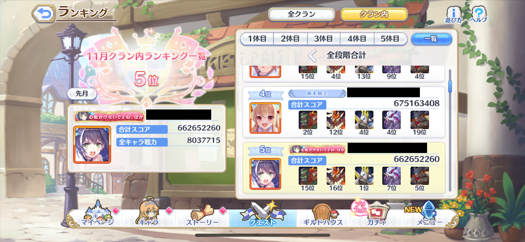 やはり先月のように4000万以上出せない凸ルートなのでスコアの伸びは前月、前々月より低いですね。