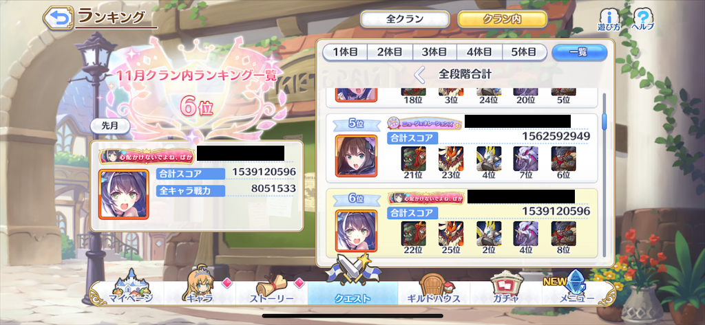 ここまで来ると新情報はクラン内で隠して終了間際に後悔するなんてこともありますが、惑わされずに自分の凸ルートを信じましょう。