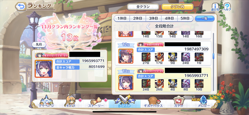 【プリコネ】11月クランバトル 5日目の状況と結果・総括