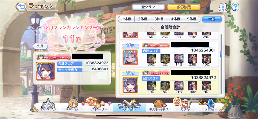 本日は楽な4ボスから凸したため、明日以降はよりダメージが出る編成に変えるつもりですが、ネネカやホマレ、ステージミサキの編成でやりました。