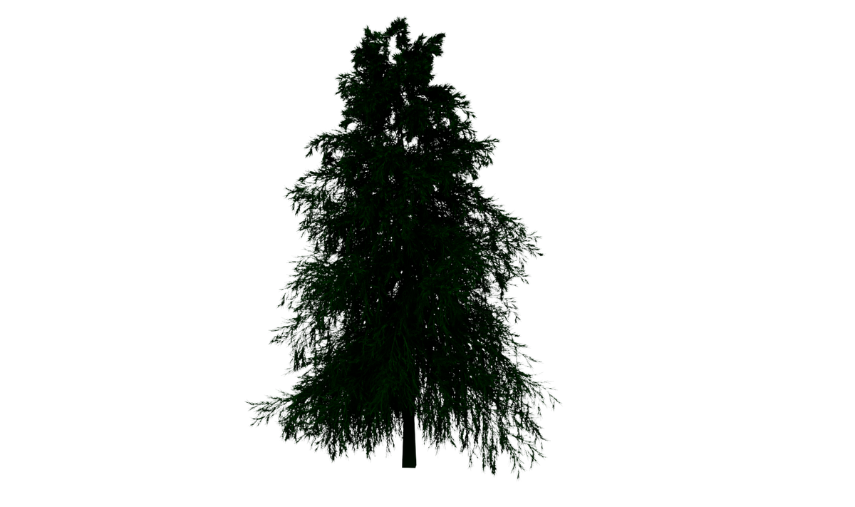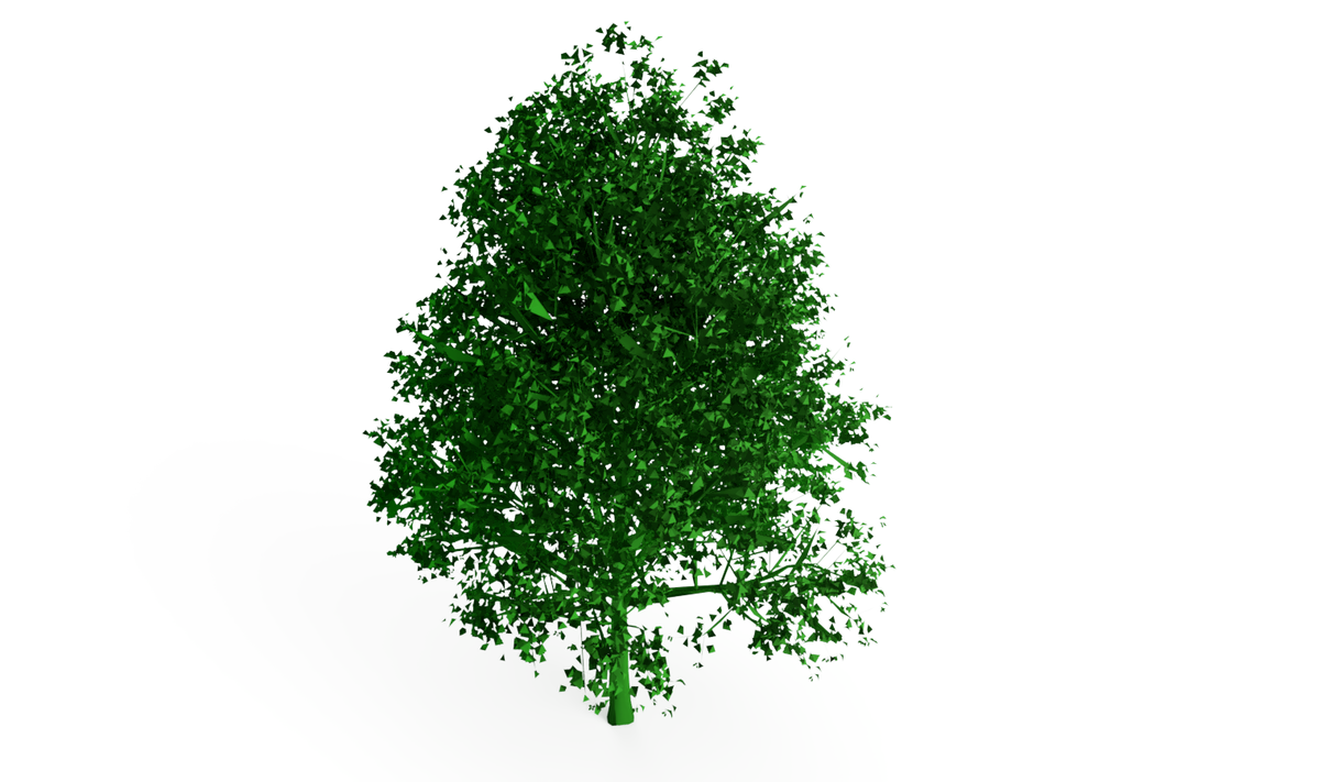 レンダリングすると黒く見えてしまいますが、ちゃんと深い緑色の木となっています。