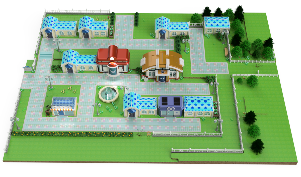 本日も昨日の続きでハナダシティの右下(5番道路方面)のモデリングをしています。