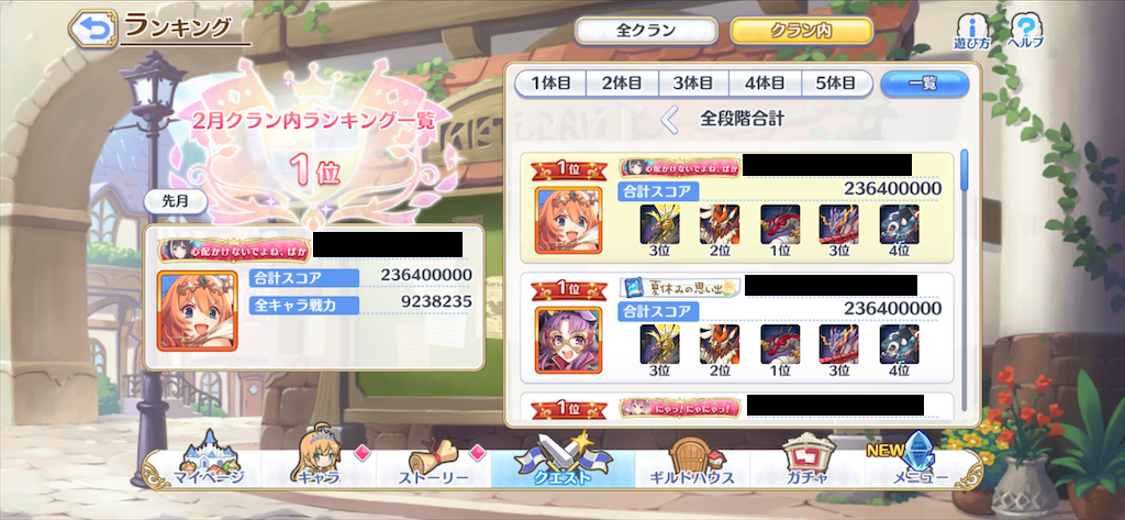 所属クランは2日目からは4段階目、上手くいけば5段階目に入るでしょうが無理せずできる限りの力を出して頑張っていきましょう!