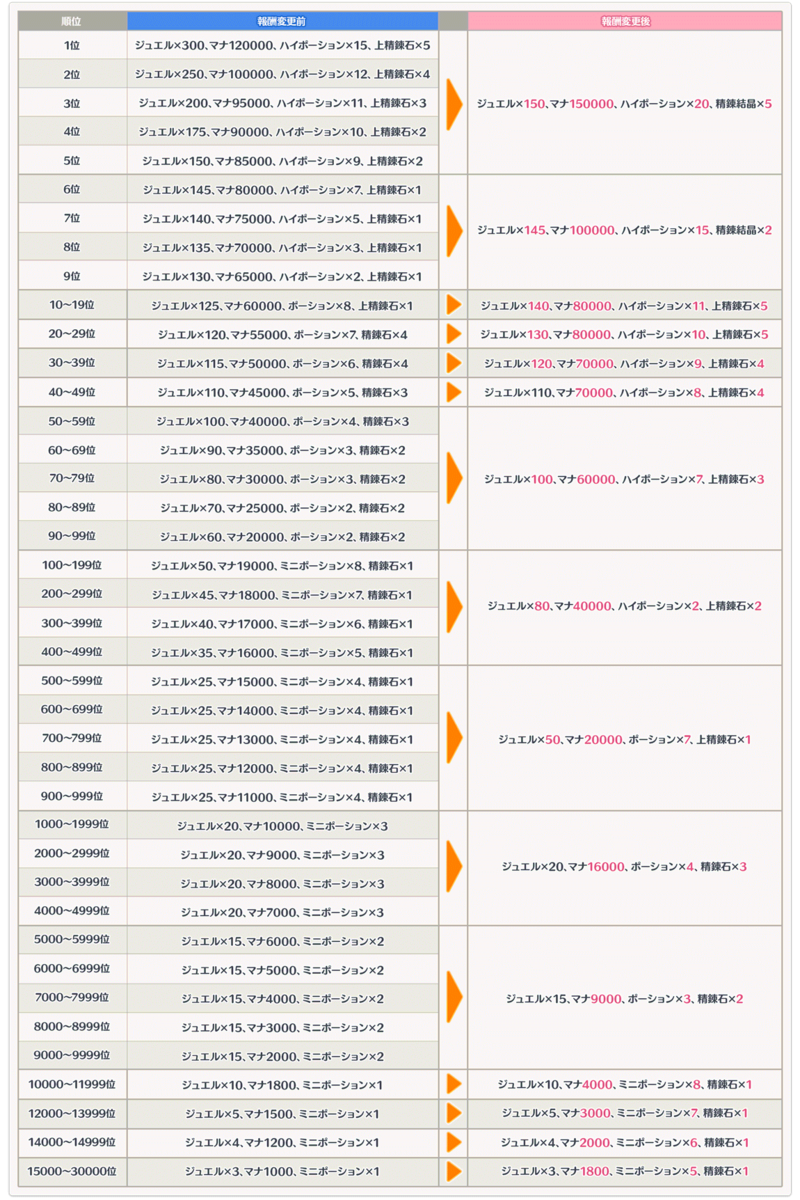つまり全体的に見て、最上位を争わなくても満遍なくジュエルがもらえる良い修正と思っています。