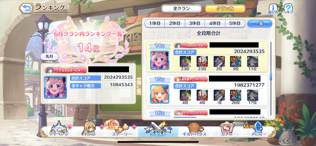 前記事に記載の通り、「3ボス物理、4ボス物理、5ボス物理編成」の物理3凸ルートで凸をしていきます。