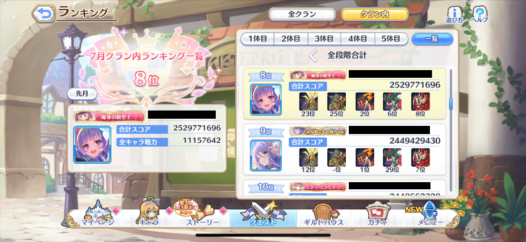 前記事に記載の通り、「3ボス魔法、4ボス物理、5ボス物理編成」の凸ルートで凸をしていきます。
