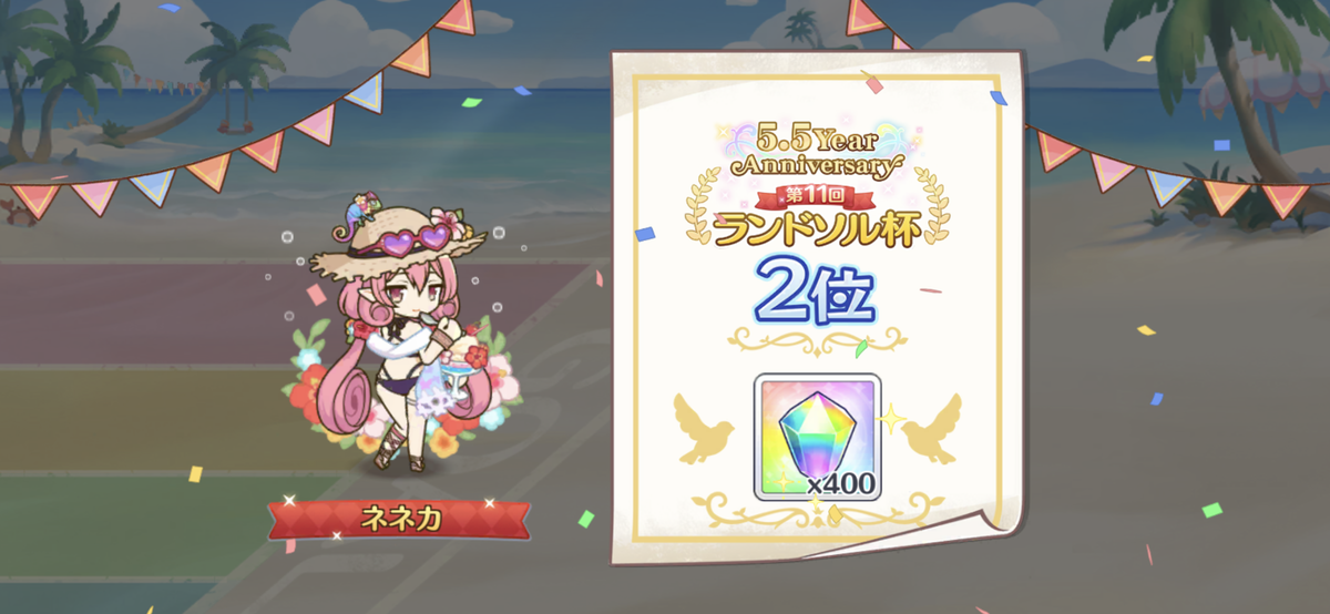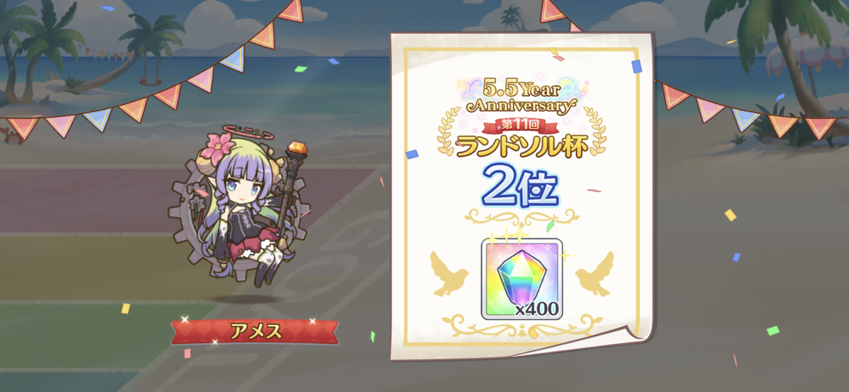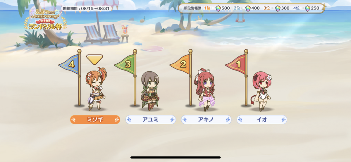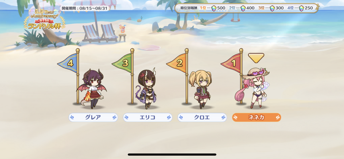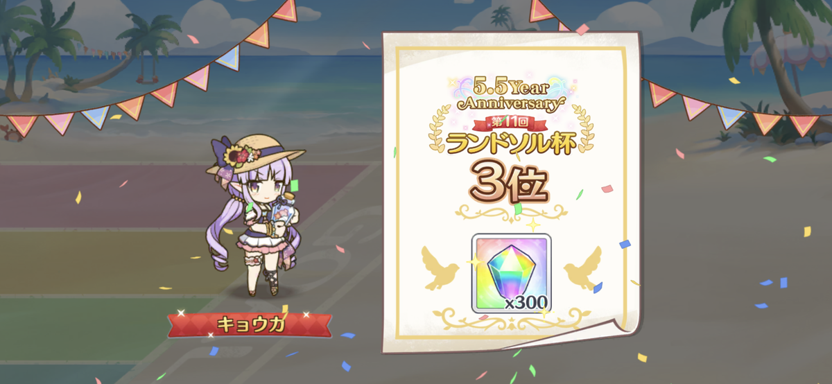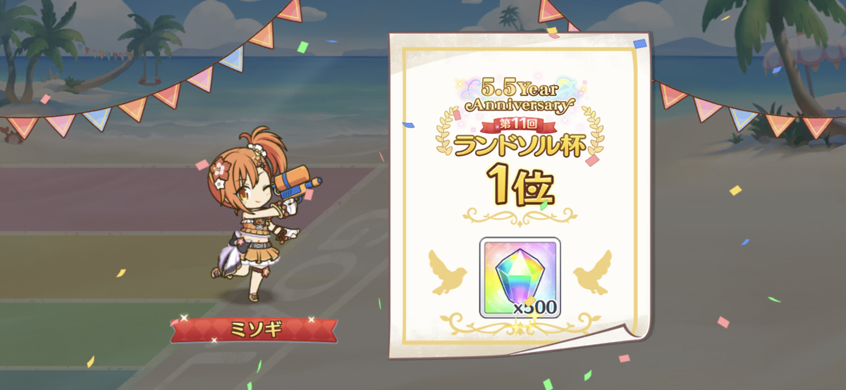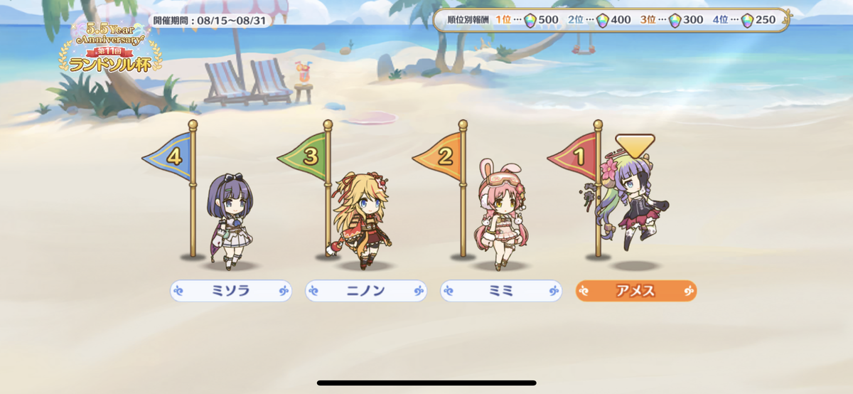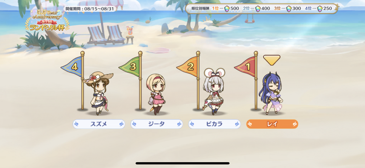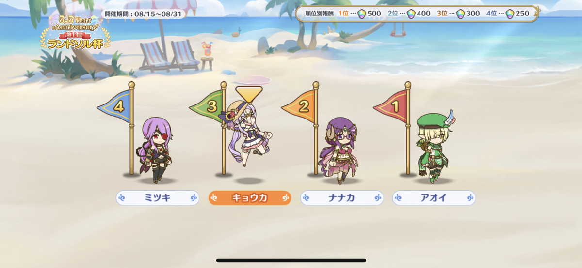 できれば毎日2位以上、6000ジュエル(ガチャ40連分)以上貰いたいところですね。