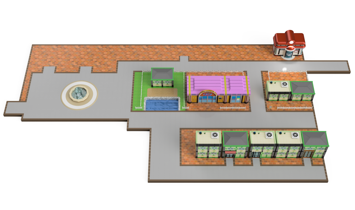 とりあえずは、ポケモンセンターの左横の建物を順次配置していって、上から順にモデリングを進めていこうかと考えています。