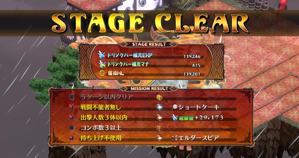 この練武5はクリア後は、獣魔神族が3×3の正方形で配置、ジオエフェクトが経験値・マナ・ヘルが各+50%と定番の配置と効果になっています。