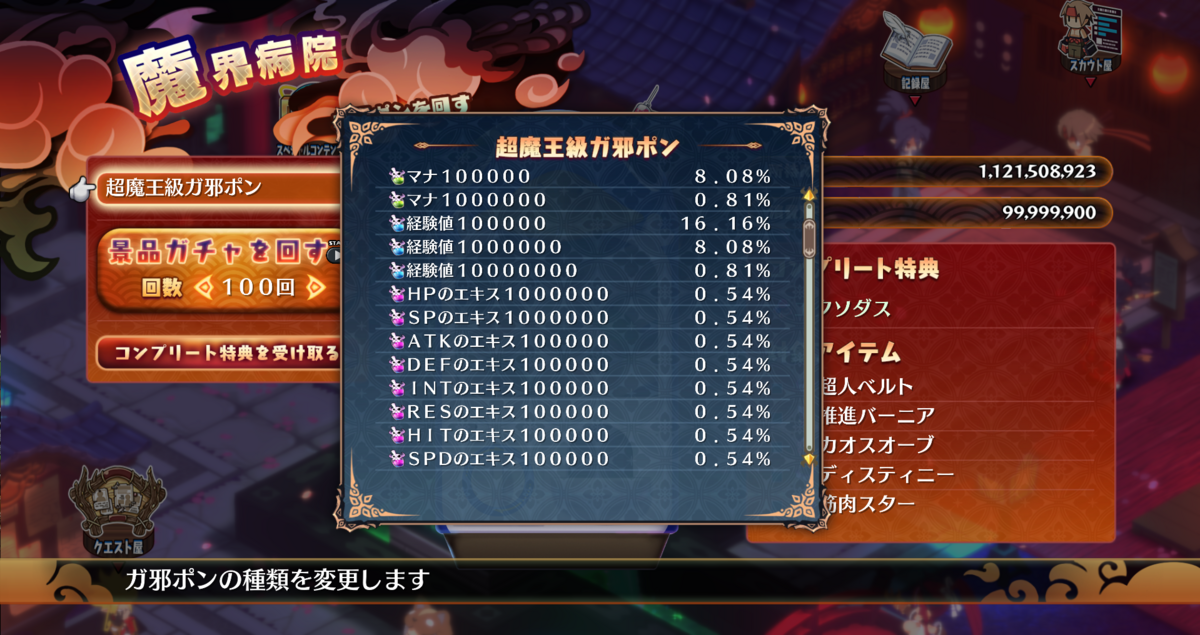 超魔王級のガ邪ポンを回すと、0.54%の確率で各ステータスのエキスが入手できます。