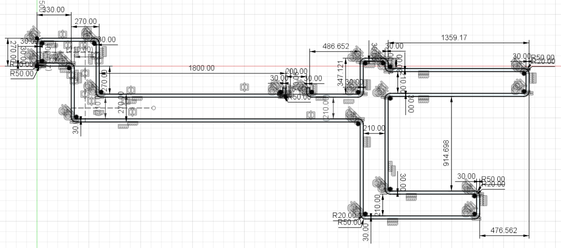 まだ建物の配置位置などが決まっていないため、正確な長さは割りだせていないですが、形状自体は出来上がりました。