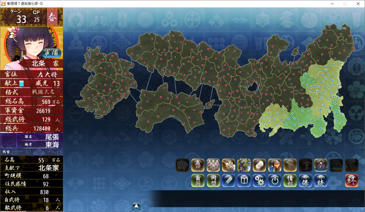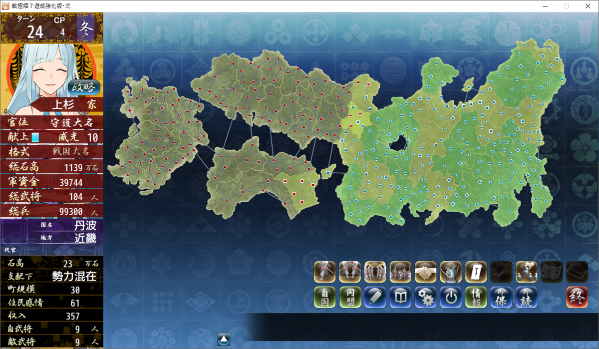 24ターンで近畿地方も制圧!(越後の1大名が6年で日本の半分を支配下に置くとか織田信長もびっくり)
