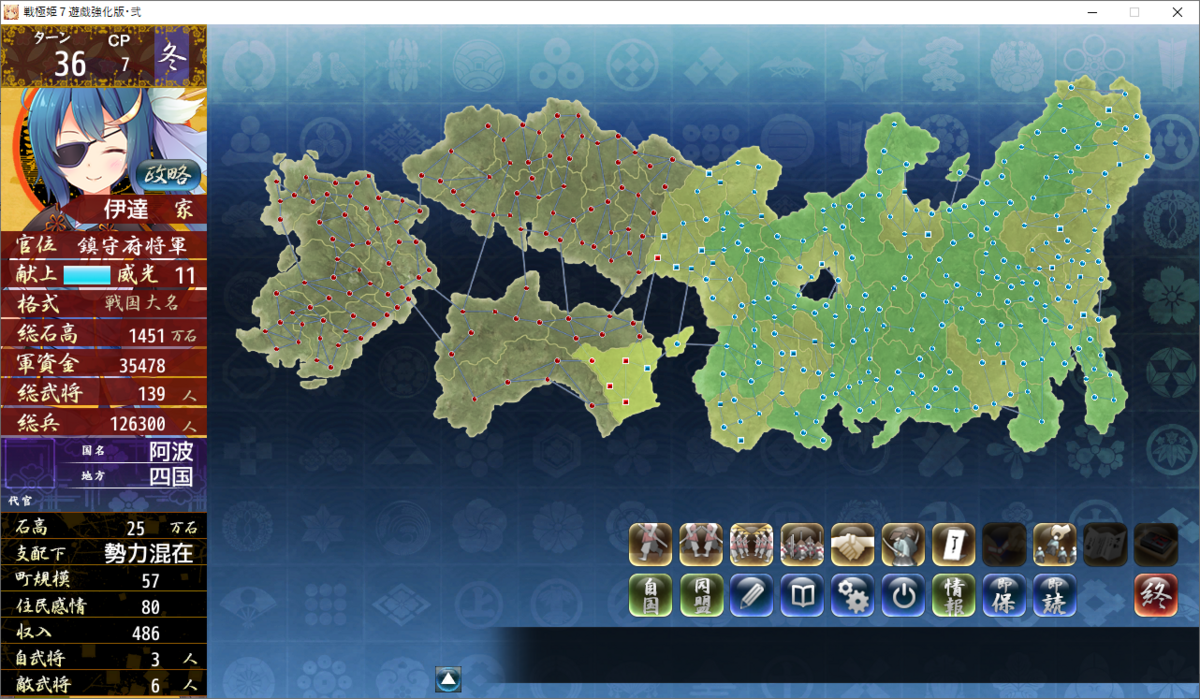 14ターンで九州+四国を全制圧+中国地方半分を制圧で飽きつつあります…