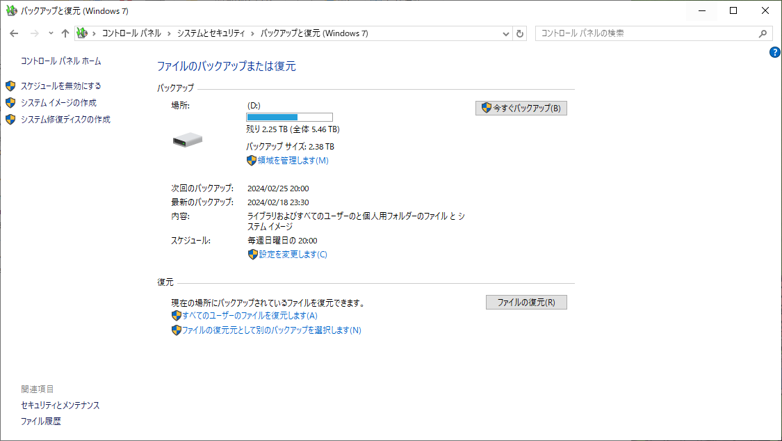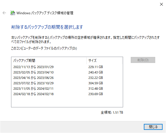 少なくとも1年に1回は古いバックアップファイルは消しておく方がいいでしょう。