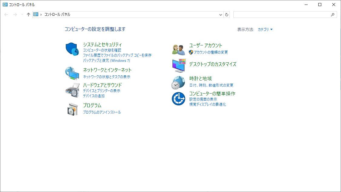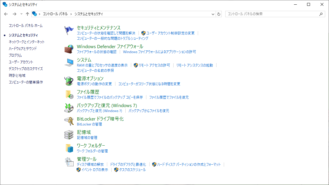「システムとセキュリティ」を選択(画像で左上の緑色の文字です)