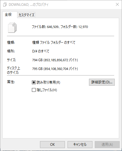 しかし、6TBもあるDドライブが残り2TBまで減っていたのには驚きました。