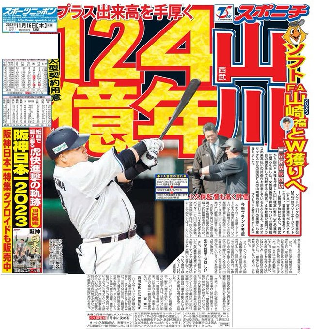 その山川に対してソフトバンクが提示したとされる契約が報じられたものです。