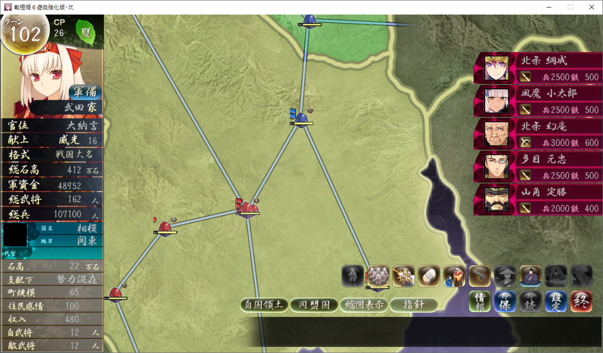 上野・武蔵支配後から相模侵攻開始1ターン目