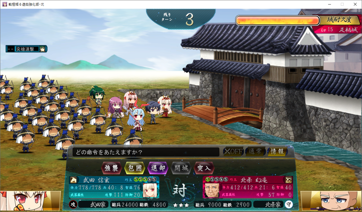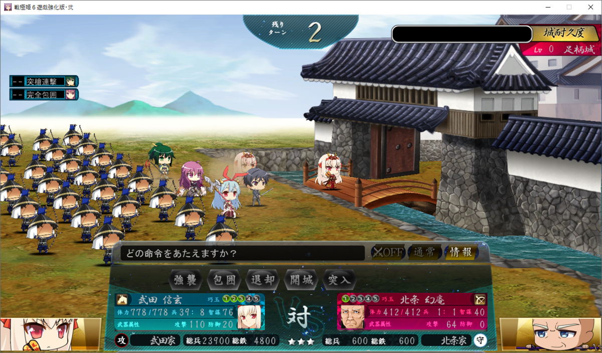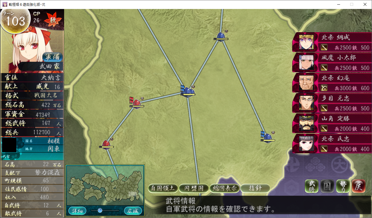 そうすれば残りは一本道で2ターン(小田原→河村→足柄)で相模制圧→クリアです。