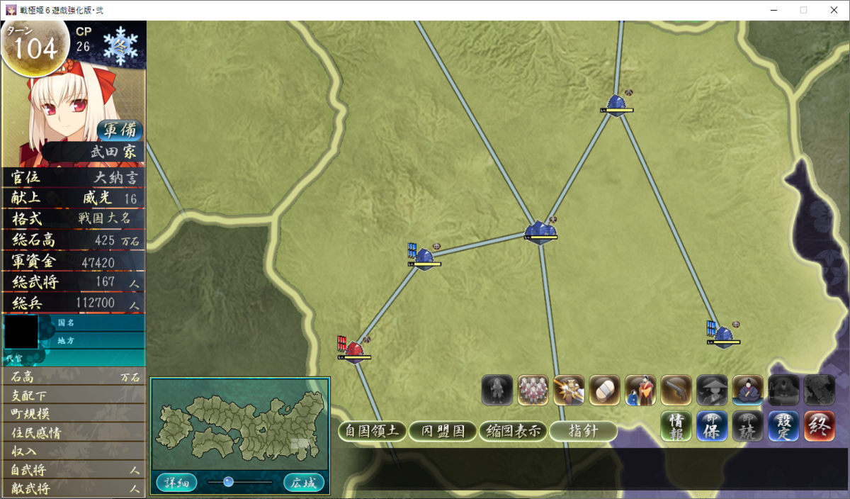 どう考えてもこちらが有利(隣接するのも2国3城のみなのでそこに大量の兵を配置し侵攻すれば問題なし)すぎて一方的な蹂躙になります。