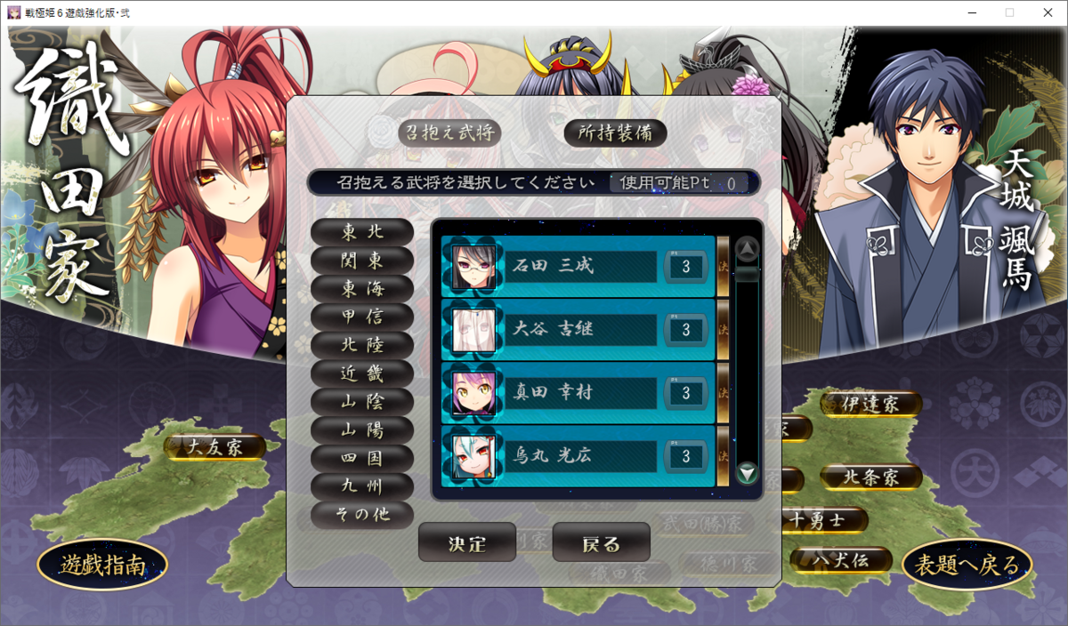 ああ、ちなみに「武田家ルート」では召し抱え武将不可(ただし、「その他」武将の一部は召し抱え可能)です。