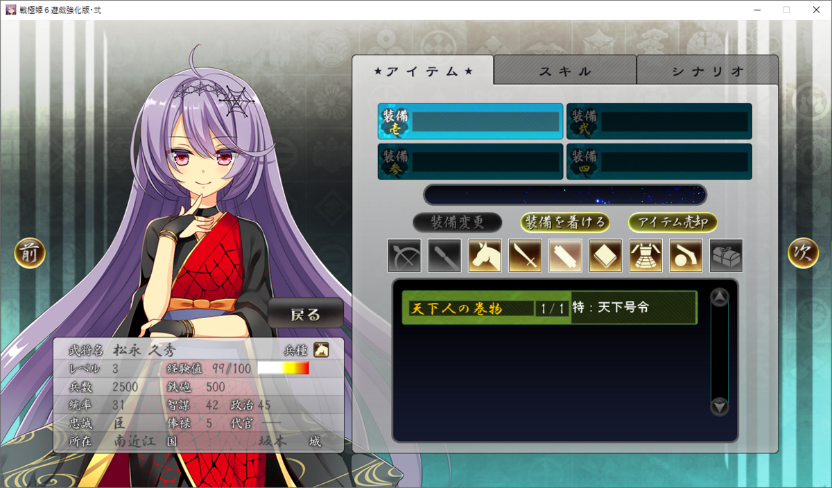 なお、このターンで目通りで最高ランクのアイテムである「天下人の巻物」を入手しました。