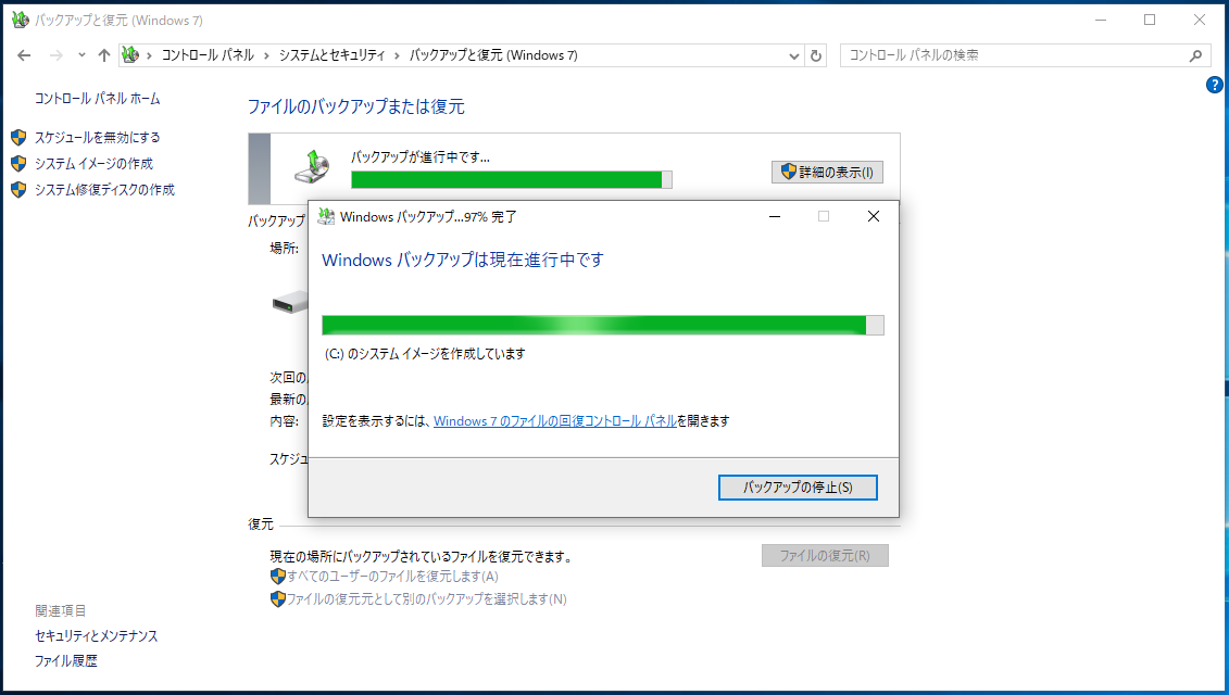 今回は、「PCのバックアップ時に進行状況が途中で止まってしまうときの対処法」を書き残しておきます。